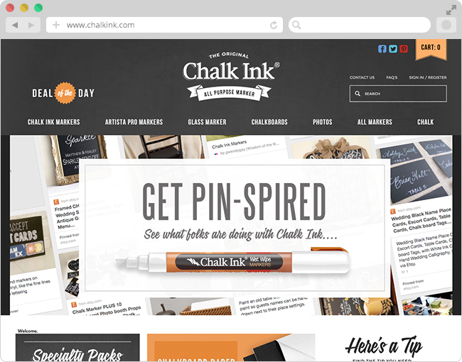 Sudah bukan rahasia lagi bahwa kita adalah makhluk sosial dan pada saat berbelanja kita aka melihat pendapat orang lain sebelum melakukan pembelian. Kami ingin ada ulasan dan testimonial dari orang-orang yang nyata. Menurut sebuah posting oleh Ann Smarty pada Mashable, “pelangga di era digital memiliki alasan untuk meragukan setiap review yang baik merupakan cerminan dari produk yang baik atau komentar dibuat dengan maksud untuk meningkatkan reputasi perusahaan. Testimonial media sosial sulit untuk dipalsukan karena pada umumnya ada seseorang dengan catatan aktivitas di setiap belakangnya. “Salah satu cara yang digunakan Chalk Ink sebagai bukti sosial untuk mendorong pengunjung agar membeli adalah dengan menampilkan Pinterest akun mereka yang menonjol dalam slideshow. Pengunjung dapat menelusuri proyek papan tulis yang dibagi oleh Chalk Ink dengan cukup besar dan kreatif.