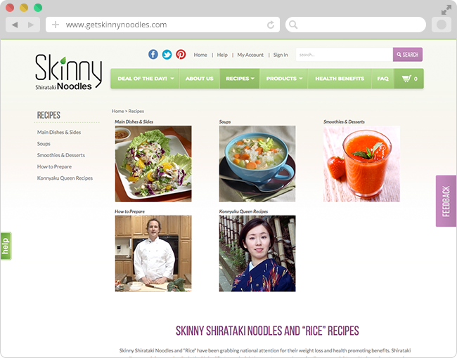Setiap customer yang mengunjungi situs Anda tidak selalu melalui pintu depan atau homepage. Kadang-kadang pencarian mereka jatuh pada halaman kategori atau halaman mengagumkan lainnya yang Anda buat dalam situs web (landing page). Dengan memberikan sedikit perhatian ekstra pada halaman landing page ini dan fokus pada pesan Anda dapat mengubah pengunjung menjadi pelanggan. Contohnya Skinny Noodles mengkhususkan diri dalam beras dan mie sehat yang diadaptasi dari resep tradisional Jepang. Untuk membantu pelanggan agar tetap sehat, mereka telah membuat sumber resep mereka sendiri di mana Anda dapat menemukan berbagai macam makanan, smoothies dan sup yang menggabungkan produk mereka. Hal ini tidak hanya menjadi sumber daya yang besar bagi para pelanggan mereka dalam membuat makanan sehat untuk keluarga, tetapi bagi customer baru maupun yang membutuhkan beberapa ide mengenai bagaimana menggabungkan Skinny Noodles ke dalam perencanaan makan mingguan mereka. Untuk membantu dalam pembelian, setiap resep akan menghubungkan pelanggan secara langsung dengan produk yang digunakan.
