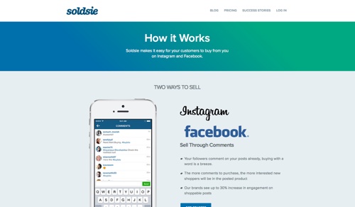 Soldsie memungkinkanmu menjual melalui komentar di halaman Facebook, serta Instagram. Mengubah foto produk ke dalam kampanye penjualan. Untuk membelinya, followers hanya perlu menuliskan “Sold” pada kolom komentar. Kemudian mereka akan terhubung dengan halaman Facebookmu, kemudian menerima email tagihan dari pesanan mereka, dan check out. Soldsie juga menawarkan metode pembayaran menggunakan PayPal atau kartu kredit. Soldsie menawarkan live chat dan terintegrasi dengan Shopify. Untuk harga : Gratis hingga 49 klik per bulan. Paid plan mulai dari $5 per bulan untuk 50-499 klik.