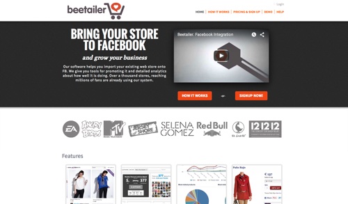 Beetailer adalah tool yang bisa kita gunakan untuk mengintegrasikan toko online dengan Facebook tanpa harus memasukkan kembali data produk. Komentar yang dibuat di toko Facebook juga bisa ditampilkan di toko biasa. Beetailer juga memuat dan mengkonfigurasi promosi untuk meningkatkan jumlah fans dan komentar produk. Tool ini memberikan analisis secara real-time seberapa baik kampanye yang kamu lakukan. Melacak aktivitas sosial dan mengukur efektifitasnya. Untuk harga: Free untuk 1 toko dan 30 produk, Paid plan mulai dari $50 per bulan untuk 2 toko dan 500 produk.