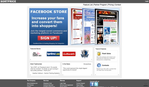 SortPrice merupakan platform perbandingan harga yang juga menawarkan aplikasi yang bisa digunakan retailer untuk menjual produk secara langsung di Facebook. Buat toko Facebook yang unik, lengkap dengan kemampuan untuk mengacak produk yang paling populer, splash page untuk menarik pelanggan baru, serta barang-barang baru bisa dilihat oleh pelanggan yang paling aktif. Gunakan flash sales dan fitur kontes untuk menjual lebih banyak produk dan memberikan reward untuk pelanggan. Untuk harga: Plan mulai dari $99.99 per bulan.
