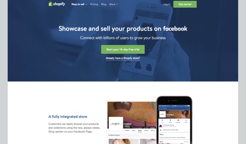 Shopify merupakan platform e-commerce populer yang memungkinkanmu untuk mengelola produk di beberapa sales channels, termasuk Facebook. Disini pelanggan bisa melakukan check out tanpa meninggalkan Facebook atau menyimpan informasi tersebut untuk pembelian yang akan mendatang. Detail produk, gambar dan persediaan akan tersinkronisasi secara otomatis setelah kamu melakuakn update di Shopify. Untuk harga: Plan mulai dari $9 per bulan.