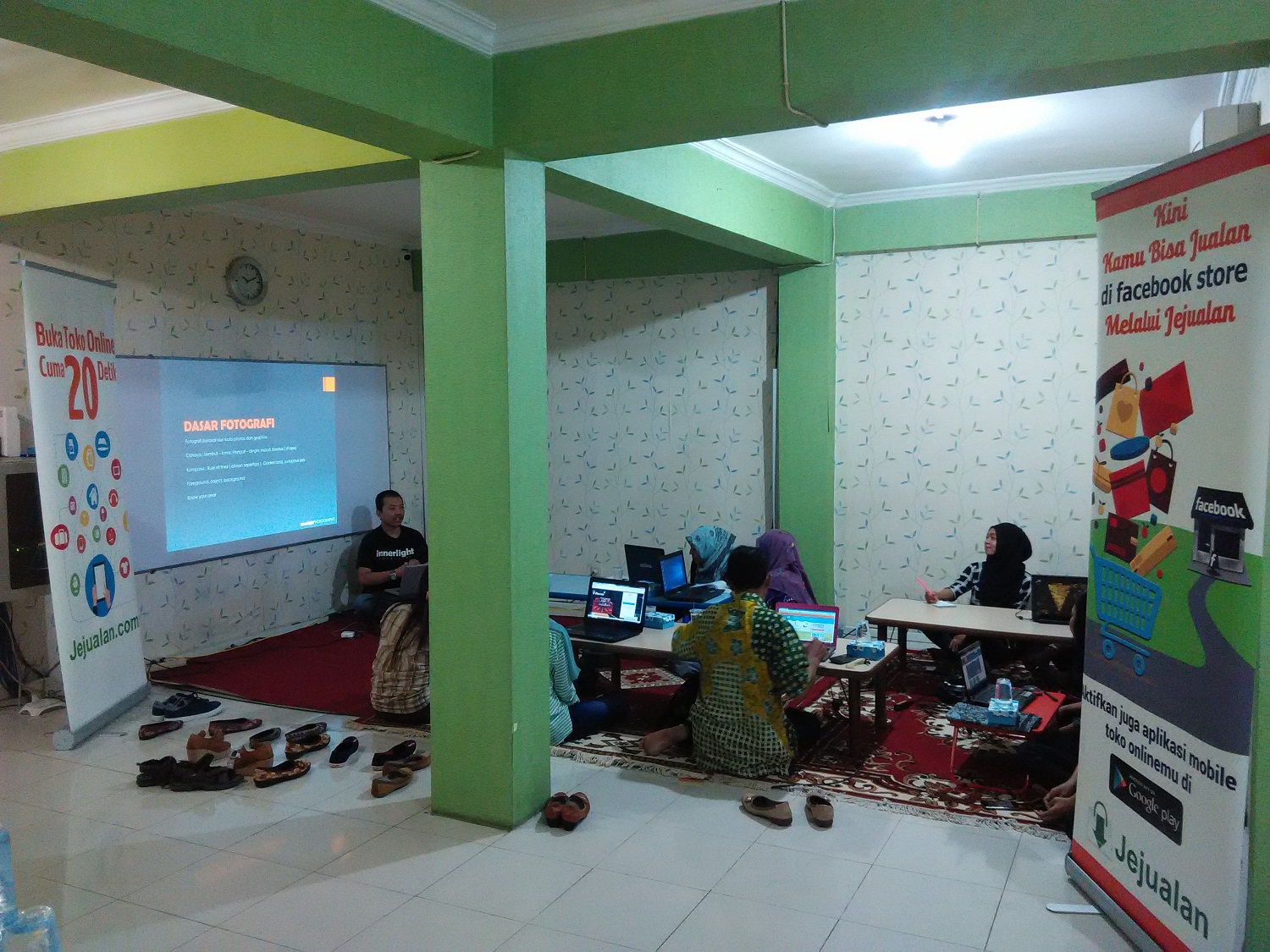 Kanca Jejualan, kemarin pada tanggal 27 April 2016, Jejualan mengundang peserta pelatihan UMKM Bantul ke kantor cabang Jogja, di Jl. Perintis Kemerdekaan No 33. Acara yang kita adakan adalah membahas tentang bagaimana cara mengambil gambar produk yang dipasarkan dengan pralatan yang sederhana, namun hasilnya tetap maksimal.