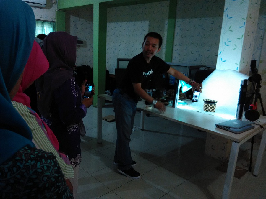 Para peserta mencoba memoto produk yang sudah mereka bawa satu persatu. Banyak diantara mereka yang berkomentar, bahwa ternyata mudah sekali caranya, dan hasil produknya juga bagus.