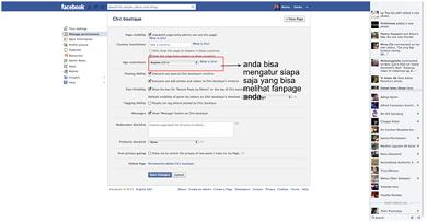 - Jangan lupa untuk mengedit pengaturan privasi yang sering membuat orang tidak bisa mengakses Fanpage anda. Misalnya dengan adanya tulisn “This public profile is not visible” atau “your Facebook page is appropriate for people under the age of 18.” Caranya adalah sebagai berikut ini.